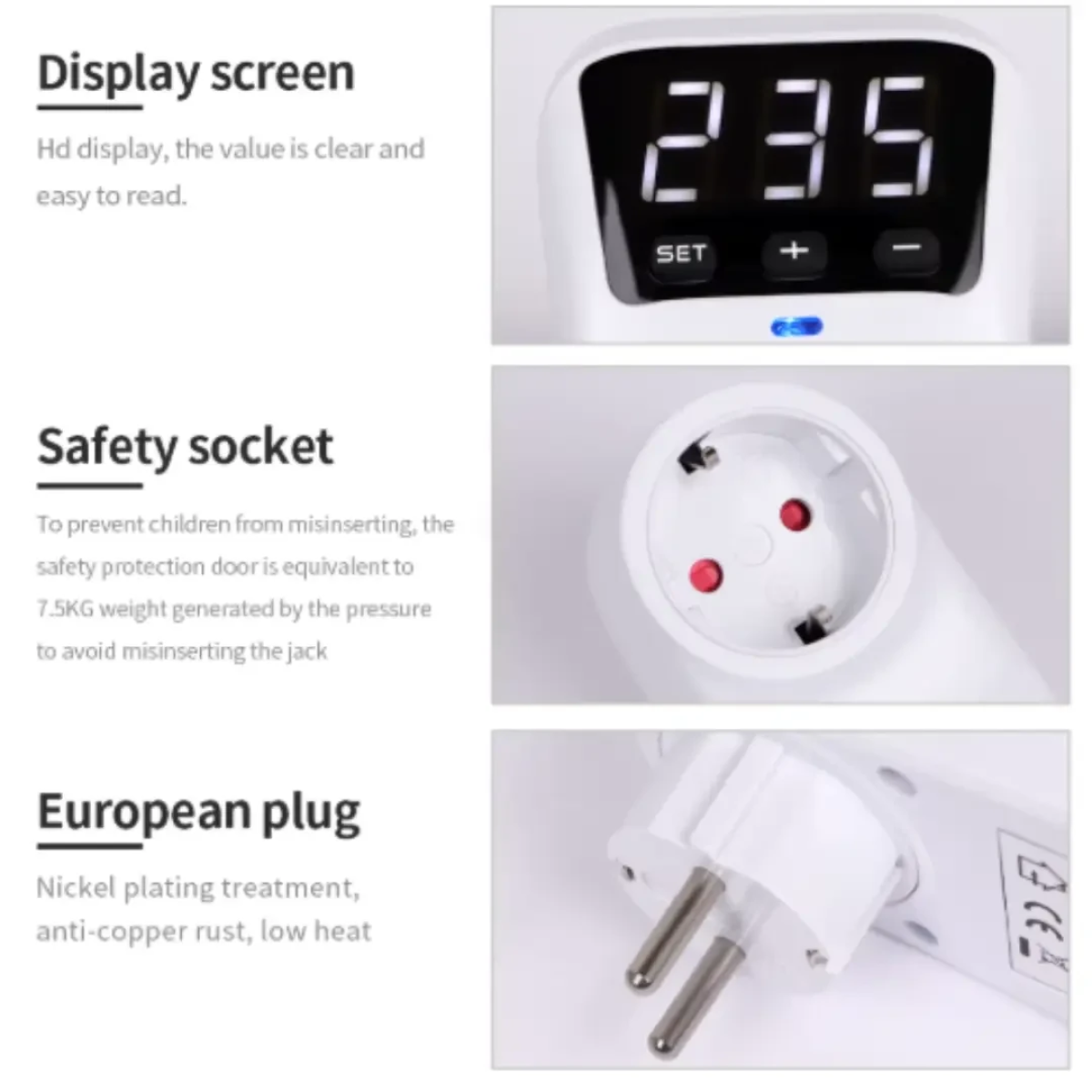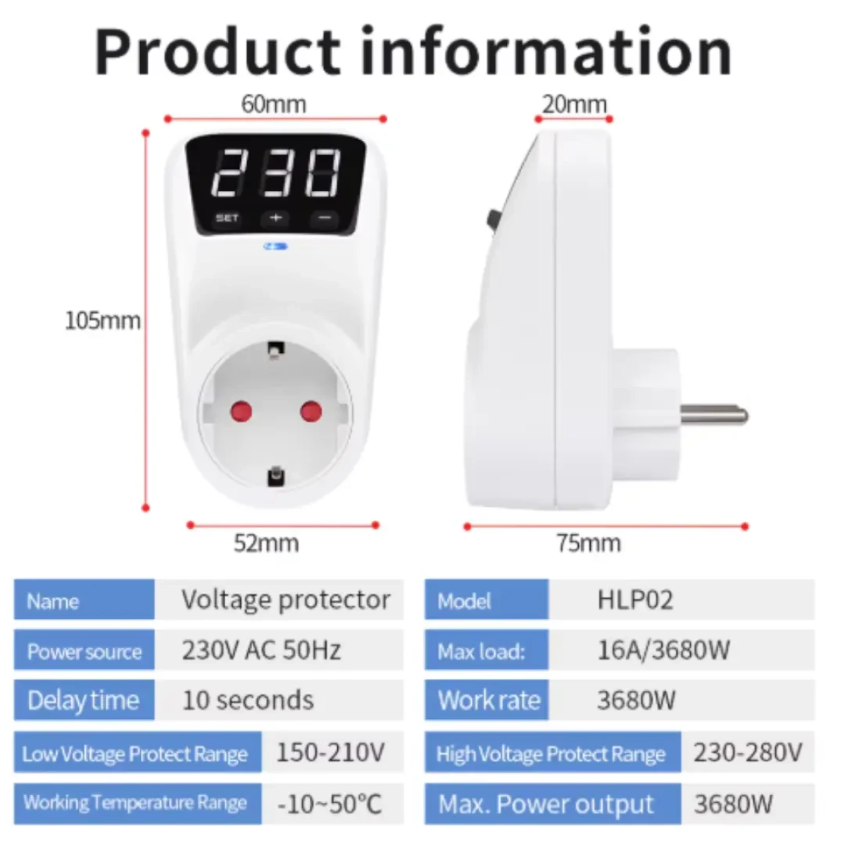 Розетка з регульованим обмеженням напруги, 16 А, автоматичний захист від перепадів напруги